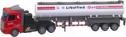 Het speelgoed bootst een echte tankwagen nauwkeurig na met details zoals de opschriften 'Liquified Gas' en 'NO SMOKING'.