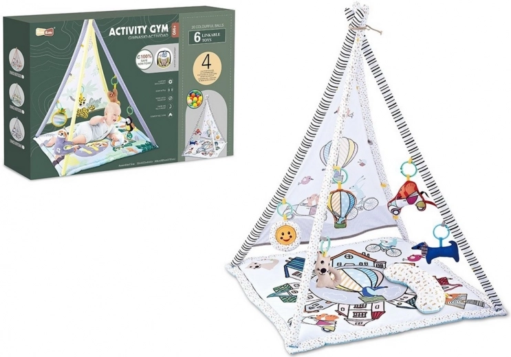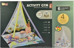 Speelkleed met tent valt op door zijn contrasterende design, dat tegelijk een leuke en leerzame hulp is voor de allerkleinsten.