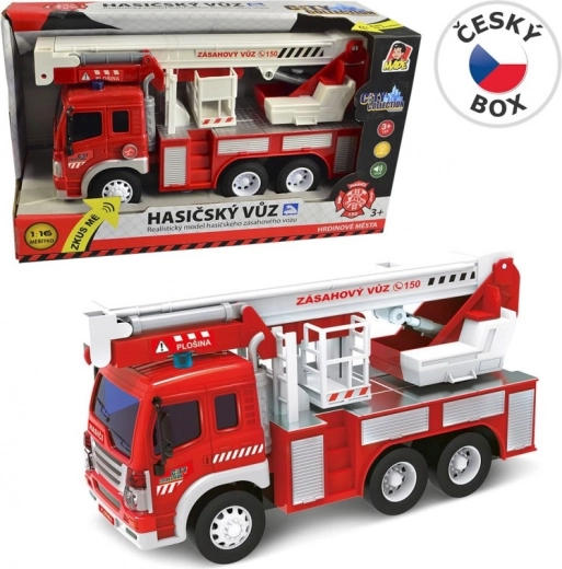 Brandweerauto met Platform uit de City-collectie is een geweldige aanvulling voor elke kleine held. Het realistische model op batterijen, dat licht en geluiden produceert, biedt een authentieke ervaring van het besturen van brandweervoertuigen.