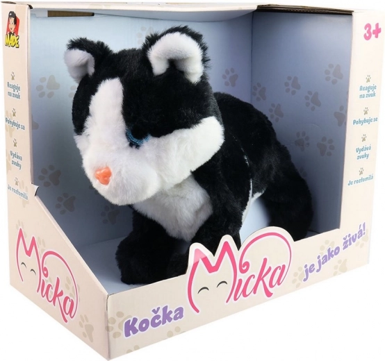 Kat Micka op batterijen, die reageert op geluid, brengt plezier en vermaak in uw huishouden. Deze schattige kat beweegt en maakt geluiden die haar speelse karakter tot leven brengen.