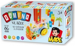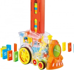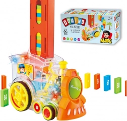De transparante locomotief voor kinderen biedt plezier met 86 dominostenen en spannende lichteffecten. Geniet van een muzikale rit vol kleur en creëer het perfecte domino-effect.