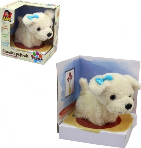 Schattig hondje zorgt voor plezier voor elk kind. Het maakt aangename geluiden en kwispelt met zijn staart, wat kinderen zal verheugen.