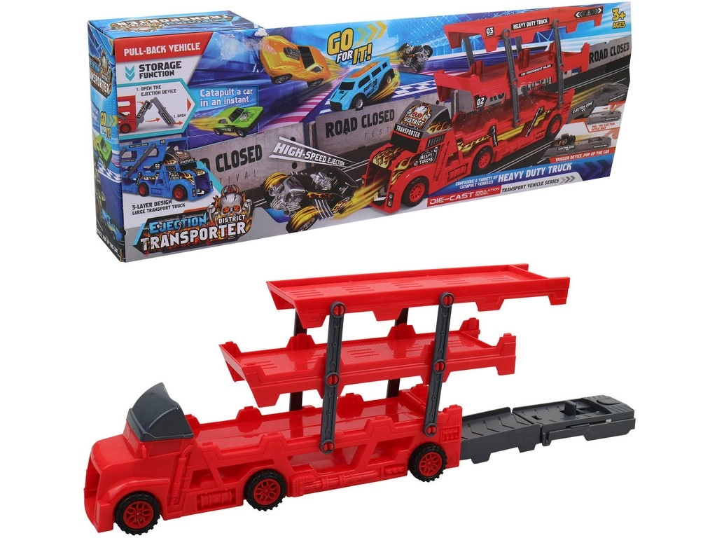 De vrachtwagen beschikt over een ruime laadruimte voor het vervoeren van tot wel zes autootjes, wat zorgt voor eenvoudig ordenen en transport.