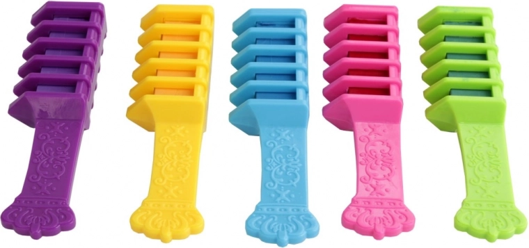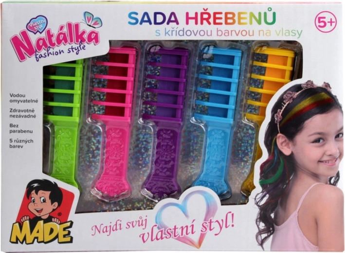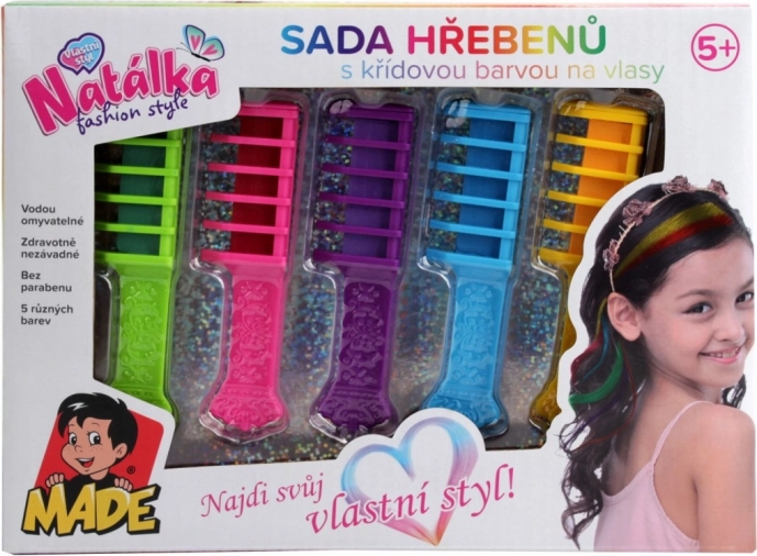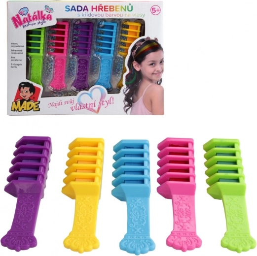 Ontdek de wereld van kleurrijke kapsels met deze geweldige kamset. Elk van de vijf kammen biedt een andere kleur, waardoor je fantastische en unieke stijlen kunt creëren. De kleuren zijn volledig veilig voor kinderen vanaf vijf jaar en dankzij de uitwasbaarheid zijn ze heel eenvoudig te gebruiken. Ze bevatten geen parabenen, zodat je gerust kunt zijn over de gezondheid van je kinderen.