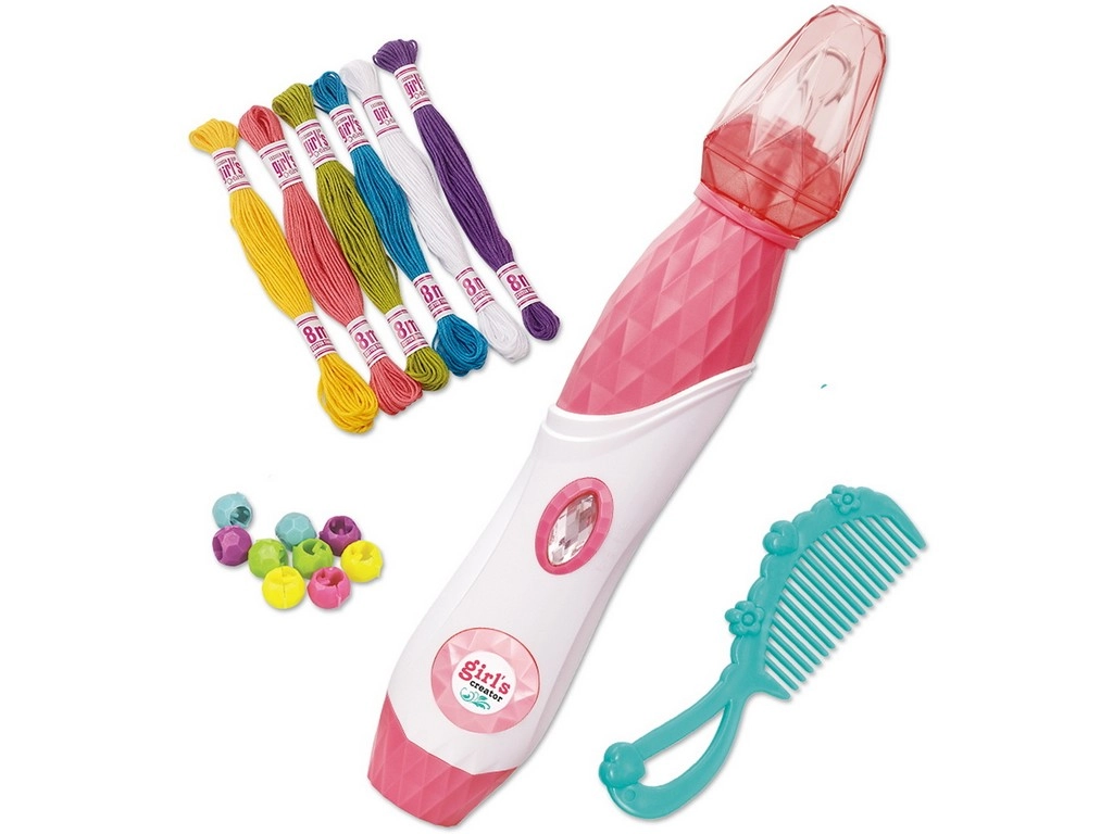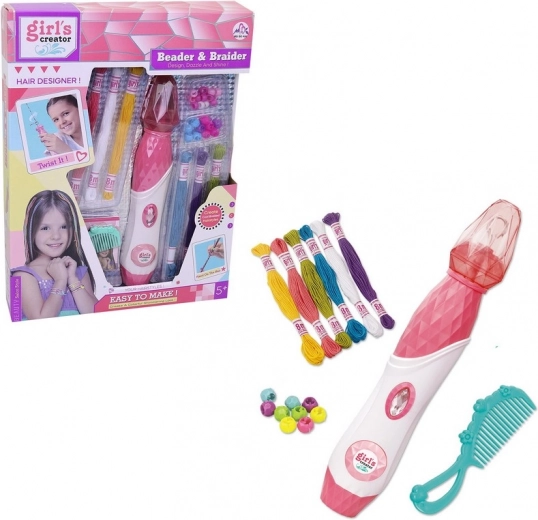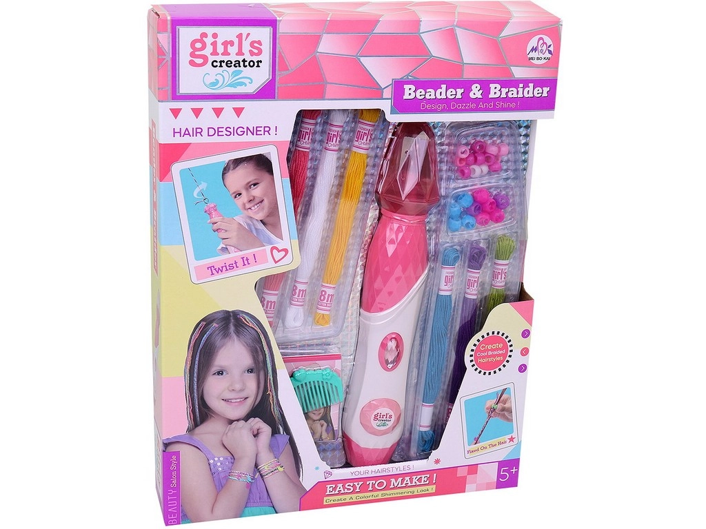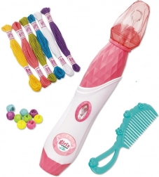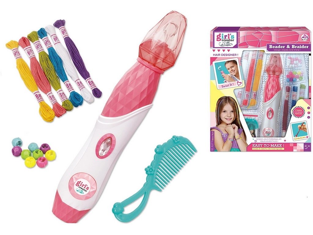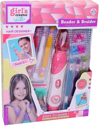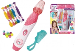 Deze set parels voor haarversiering bevat alles wat uw kind nodig heeft om originele kapsels te creëren. Het gebruik is eenvoudig – de draden worden aan het haar bevestigd en met de diamantknop wordt een haarlok gedraaid. Vervolgens bevestig je eenvoudig het uiteinde van de lok met een parel en het nieuwe kapsel is klaar.