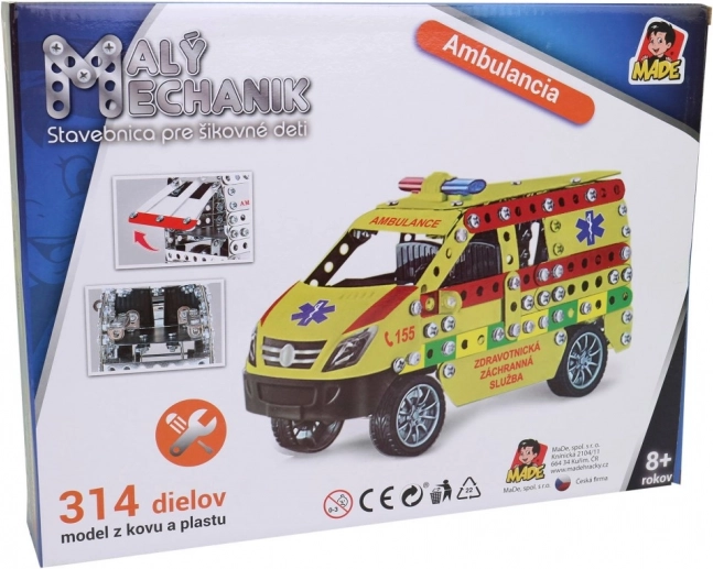Bouw je eigen ambulance en beleef plezier met deze bouwset Kleine monteur met 314 onderdelen, geschikt voor kinderen vanaf 3 jaar.