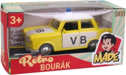 Auto Trabant in politieversie is een klein metalen model, ideaal voor kleine jongens die houden van adrenalinespellen met politieauto's.