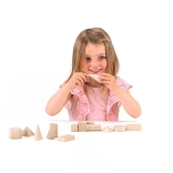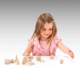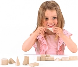 Deze houten set bevat 14 verschillende geometrische vormen die dienen als ideaal hulpmiddel voor het vroege leren van geometrie. Kinderen leren vormen zoals kubus, balk, prisma, cilinder, piramide, kegel en bol te herkennen.