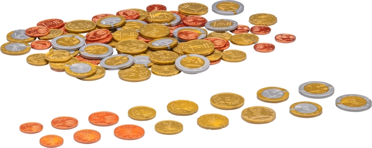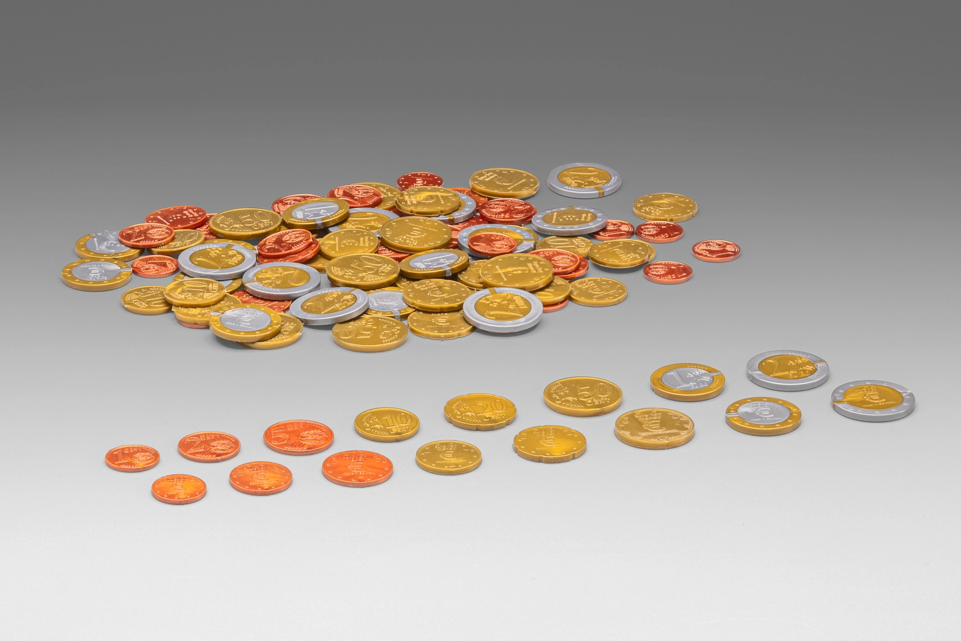 De munten zijn gemaakt van 100% recyclebaar plastic, wat het milieu ten goede komt. Elke set bevat 80 munten in verschillende waardes (van 1 cent tot 2 euro), zodat kinderen realistisch met geld kunnen spelen.