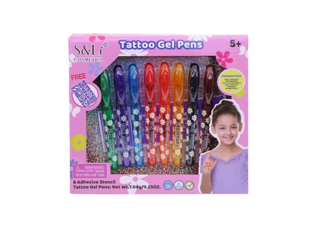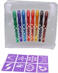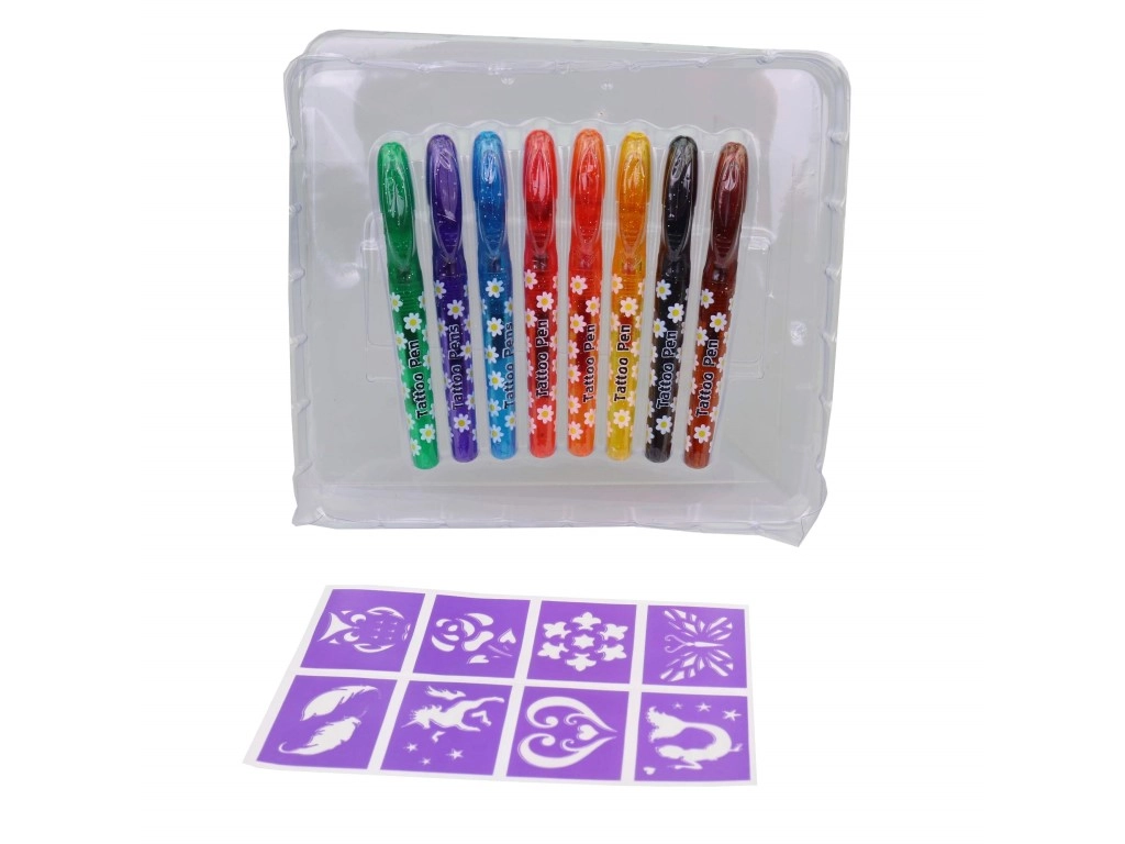 De set tattoopennen biedt een geweldige kans om een persoonlijke tattoo overal op het lichaam te maken. Het is ideaal voor kinderen vanaf 5 jaar, die zo hun favoriete kleurencombinaties kunnen kiezen. Gemakkelijke toepassing vergelijkbaar met tekenen met een potlood zorgt ervoor dat iedereen plezier zal hebben. De verpakking bevat: