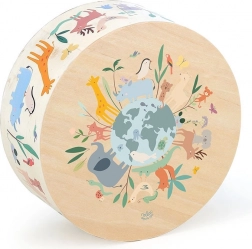Vilac Houten Cajón Dieren van de Wereld is een prachtig geïllustreerd muziekinstrument voor kinderen dat de ontwikkeling van fijne motoriek, coördinatie en auditieve waarneming stimuleert. Deze inspirerende cajón brengt liefde voor muziek in de kinderwereld en moedigt hen op natuurlijke wijze aan om ritmes te ontdekken.
