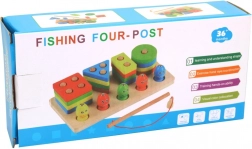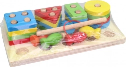 Deze houten puzzel biedt twee verschillende spellen die het geduld en de concentratie van uw kinderen zullen versterken. Het eerste deel bestaat uit geometrische vormen in basiskleuren, die op de juiste manier in de openingen moeten worden geplaatst. Het tweede deel zorgt voor plezier met het vangen van gekleurde visjes met een magnetische hengel. Beide spellen dragen bij aan de ontwikkeling van fijne motoriek en oog-handcoördinatie.