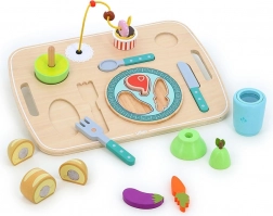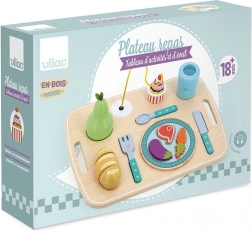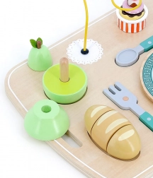 Vilac Houten activiteiten dienblad met eten is de ideale keuze voor de eerste avonturen in “tafelen”. Het stimuleert zelfstandigheid en de ontwikkeling van de fijne motoriek. Dankzij de vrolijke kleuren en prettige vormen is het ook geschikt voor de allerkleinsten.
