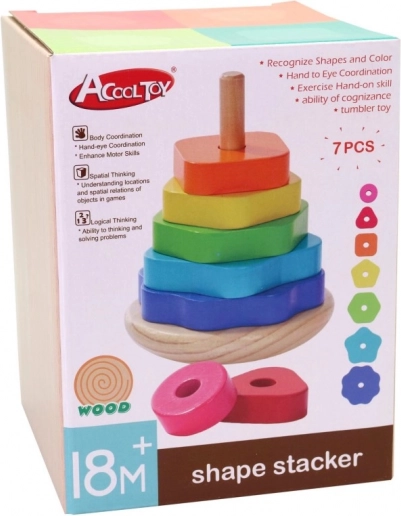 - Bevat een basis en zeven kleurrijke vormen die stap voor stap op de basis gestapeld worden.
