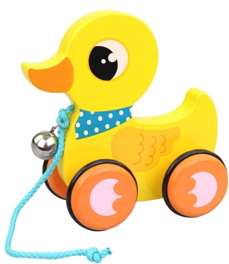 Houten trekfiguur eendje is een prachtige speelgoed die dankzij het belletje om de nek een zacht rinkelend geluid maakt tijdens het trekken en de aandacht van elk kind trekt.