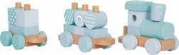 De trein bevordert creativiteit en ontwikkeling van fijne motoriek door het stapelen en combineren van blokken.