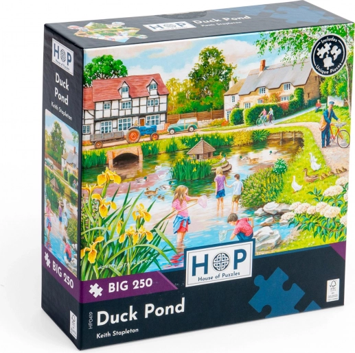 Puzzle Eendenvijver BIG van House of Puzzles brengt plezier en uitdaging voor iedere puzzelliefhebber dankzij de unieke en onregelmatige vormen van de stukjes.