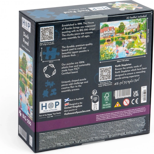 Geniet van uren puzzelplezier met Eendenvijver BIG, met 250 stukjes, elk met een unieke vorm. Dit product is ideaal voor wie iets meer zoekt dan een klassieke puzzel, dankzij de bijzondere vormen en de hoogwaardige afwerking. Bij de puzzel ontvang je ook een poster in A3-formaat, die kan dienen als handig voorbeeld of als mooie decoratie.