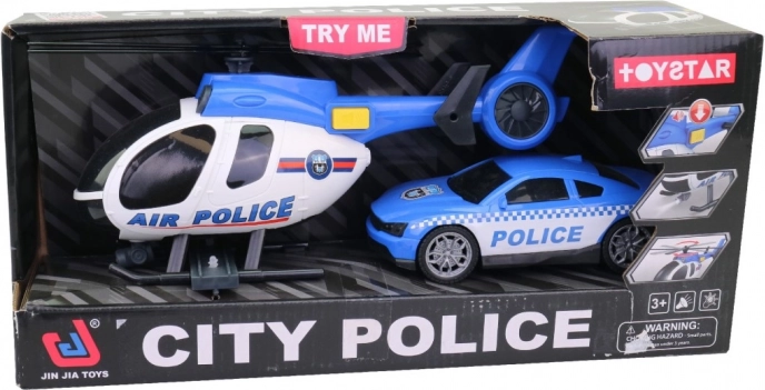 Leuke helikopter met politiewagen, ideaal voor kinderen vanaf 3 jaar. Met werkende rotor.