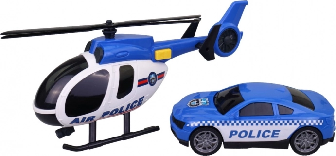 Geniet van het speelplezier met dit model van een helikopter met politiewagen. De helikopter heeft een werkende rotor en is ideaal om binnen of buiten mee te spelen.