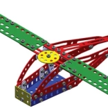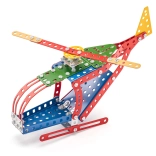 Bouw een helikoptermodel van metalen onderdelen die verkrijgbaar zijn in levendige kleuren en gemakkelijk te verbinden zijn.