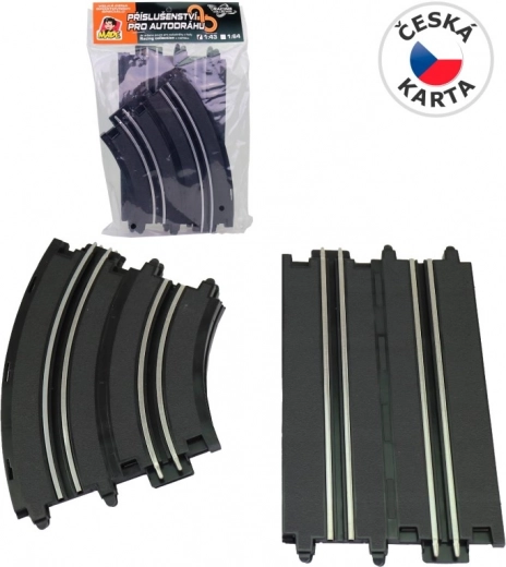 Reserve-onderdelen voor de Racing-collectie autobaan in schaal 1:43. De verpakking bevat vier baanstukken van hoogwaardige kunststof, ideaal om je autobaan uit te breiden en het speelplezier te vergroten.