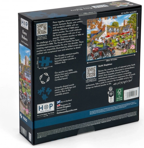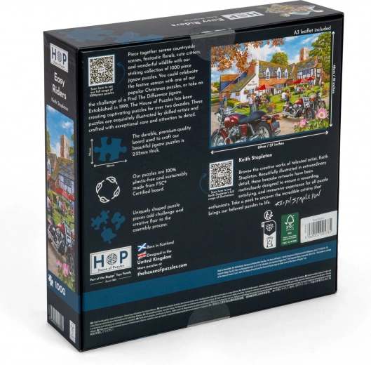 HOP Puzzel Ruiters 1000 stukjes is de perfecte keuze voor puzzelliefhebbers die op zoek zijn naar een nieuw niveau van uitdaging. Elk stukje van deze puzzel heeft een unieke vorm, wat de aantrekkingskracht vergroot en bijdraagt aan een originele legervaring. Bovendien bevat de verpakking een poster op A3-formaat, die kan dienen als handige hulp bij het leggen of als interieurdecoratie.