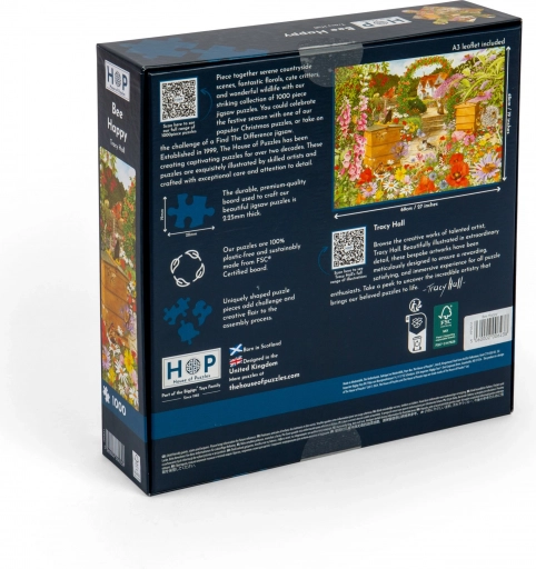 Puzzel Bijengeluk 1000 stukjes met unieke vormen van House of Puzzles en A3-poster.