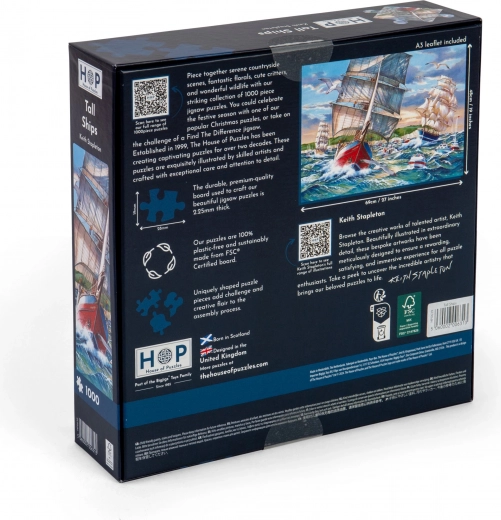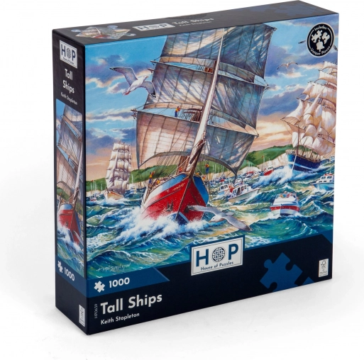 Puzzel Zeilboot 1000 Stukken van House of Puzzles biedt unieke vormen van stukken en poster A3.