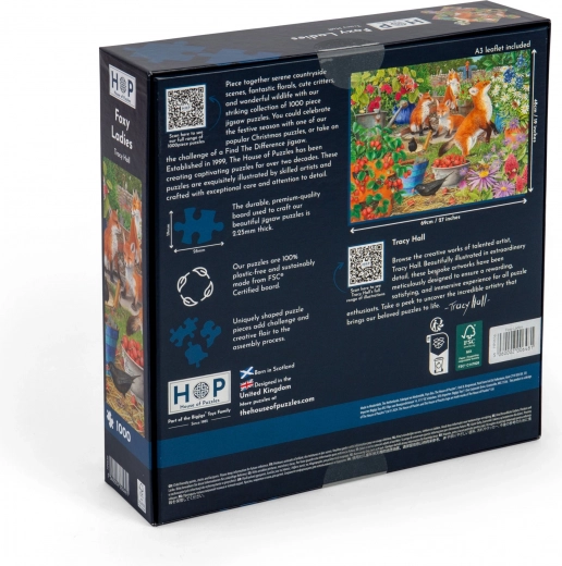 Het leggen van de puzzel Vosse-dames is niet alleen een leuke bezigheid, maar ook een geweldige manier om te ontspannen. Door de onregelmatige vormen wordt elk stukje uniek en krijgt de puzzel extra aantrekkingskracht. Het ontwerp toont een betoverend motief van vosse-dames, dat zowel kinderen als volwassen puzzelliefhebbers aanspreekt. De verpakking bevat ook een poster in A3-formaat, die als handig voorbeeld kan dienen tijdens het puzzelen.