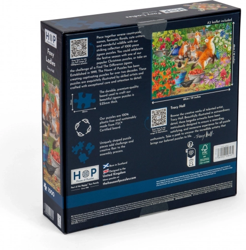 Puzzel Vosse-dames, 1000 stukjes met unieke vormen, A3-poster, afmeting 69x48 cm. Ideaal voor puzzelliefhebbers.