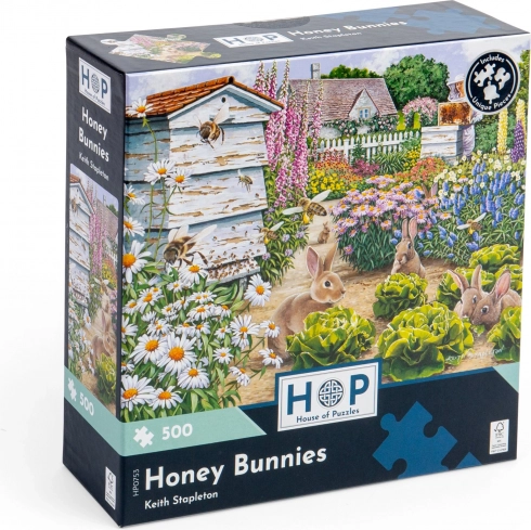 Puzzel Zoete konijntjes met 500 stukjes van House of Puzzles, bekend om de unieke vormen van de stukjes. Een leuke uitdaging voor iedereen.