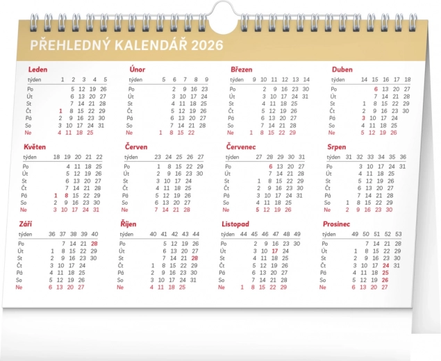 De bureaukalender is voorzien van een Tsjechisch kalendarium, met namen, feestdagen en belangrijke dagen, en biedt een maandoverzicht met voldoende ruimte voor uw notities.