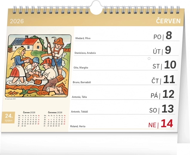 Deze bureaukalender met illustraties van Josef Lada en extra grote letters is ideaal voor dagelijks gebruik. Dankzij de haak kunt u deze eenvoudig aan de muur hangen of op een tafel plaatsen.