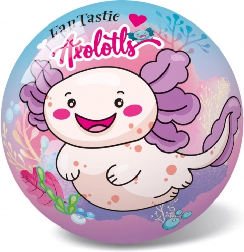 Bal met axolotl-motief met een diameter van 23 cm, ideaal voor kinderen vanaf 3 jaar. Gemaakt van duurzaam rubber voor langdurig speelplezier.