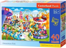 Puzzel Pretpark MAXI met 40 grote stukjes is ideaal voor jongere kinderen. Dankzij het grotere formaat van de afzonderlijke stukjes is het leggen kinderspel en wordt de puzzel vaak direct op de vloer gelegd.