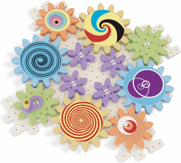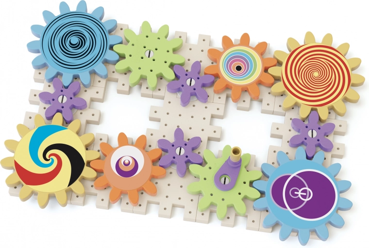 De Kaleidoscopische tandwielenset biedt kinderen de mogelijkheid een indrukwekkende ketting te creëren met tandwielen van verschillende groottes die draaien als in een kermismolen. De set bestaat uit 38 onderdelen, waaronder geperforeerde platen, pinnetjes en stickers met kleurrijke prints. Tijdens het spelen leren kinderen de basisprincipes van mechanica en ontdekken ze optische effecten die werkelijk magisch zijn.