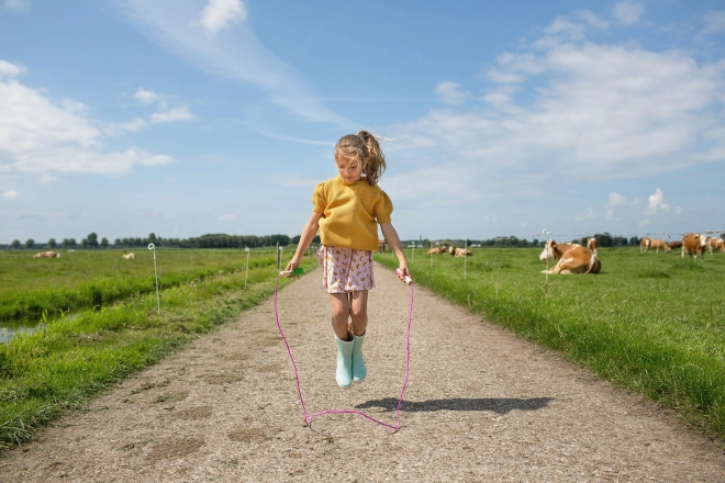 Dit springtouw is een geweldige manier om tijd buiten door te brengen en ondersteunt tegelijkertijd een gezonde levensstijl. Touwtje springen is niet alleen leuk, maar traint ook effectief het boven- en onderlichaam en ontwikkelt de coördinatie.