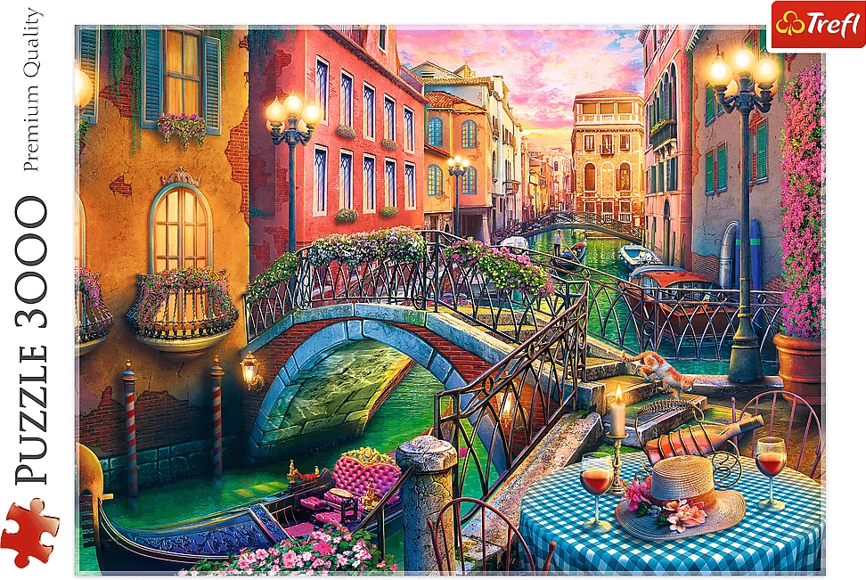 Geniet van een rustige avond met een prachtige puzzel die een schilderachtige avond in Venetië toont. Deze puzzel is een ideale uitdaging voor elke puzzelliefhebber dankzij het formaat en de rijke details.