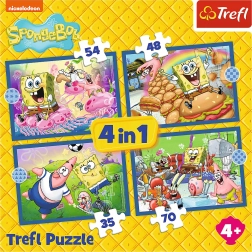 TREFL brengt plezier voor het hele gezin met vier puzzels SpongeBobs leven in één verpakking. Elke puzzel in de set heeft een ander aantal stukjes - 35, 48, 54 en 70 - wat een unieke kans biedt voor verschillende vaardigheidsniveaus.
