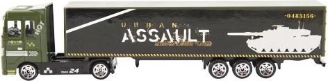 Een stijlvolle vrachtwagen met oplegger van 19 cm zal elke kleine chauffeur blij maken. Biedt freewheel voor soepel rijden, een metalen cabine voor extra duurzaamheid en hoogwaardige afwerking. Verkrijgbaar in verschillende kleurvarianten, geschikt voor kinderen vanaf 3 jaar.