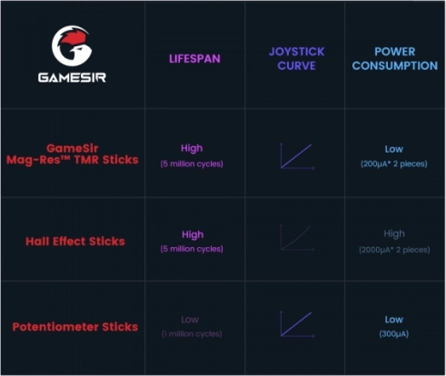 - GameSir Mag-Res TMR (combinatie van potentiometer en Hall-effect)