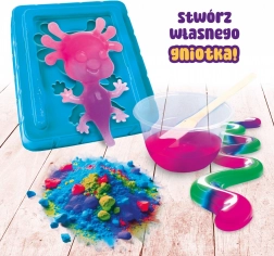 Laat je kind zijn eigen elasticiteit met een axolotl creëren! Deze creatieve set stelt kinderen in staat een anti-stressspeeltje te maken dat van kleur verandert bij temperatuurverschil.