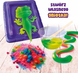 Breng creativiteit en plezier in het spel met de Slumi Science Set - Antistress Kameleon! Met deze kit kan je kind eenvoudig en snel een fantastische kameleon maken die van kleur verandert. De werkwijze is simpel: meng de magische vloeistoffen, voeg het kleurveranderende poeder toe, giet het mengsel in de mal en zie hoe jouw kameleon tot leven komt.
