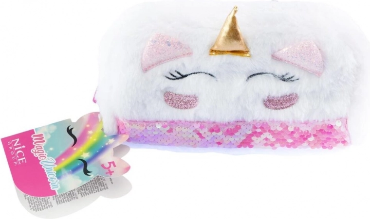 Pluchen etui met eenhoornmotief biedt een ideale plek om potloden, pennen en schoolspullen op te bergen dankzij het design met een dubbelzijdig glanzend paillettenlint en een praktische ritssluiting.