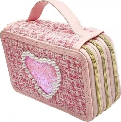 Modern en elegant Girabrilla etui van tweedstof, gewaardeerd door elk meisje dat stijl met functionaliteit wil combineren. Met parelmoerdetails en een glanzend hartje dat het etui een bijzondere charme geeft. De drie ruime vakken zorgen voor perfecte orde en gemakkelijke toegang tot schoolspullen.