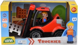 Ontdek realistisch spel met de LENA Truckies vorkheftruck. Kinderen kunnen de meegeleverde pallet laden en lossen, de cabine openen en de uitschuifbare unit met vergrendelde vorken bedienen. Het spel stimuleert de fijne motoriek, fantasie en eerste logistieke vaardigheden.