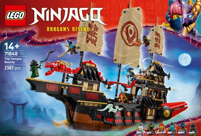 LEGO NINJAGO Parel van de Tempel is een groot en gedetailleerd scheepsmodel dat elke fan van deze serie zal verrassen. Dit model bevat een display-standaard, zodat je het schip op een plank of nachtkastje kunt plaatsen.