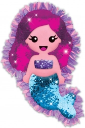 Ontdek een leuke manier om je eigen zachte knuffel te maken – het zeemeerminkussentje zet je eenvoudig in elkaar met knoopjes. Geen naaien of naalden, alleen plezier in het maken. De voorgesneden onderdelen van zachte fleece, pailletten en vilt zijn voorzien van lijmlaag en klaar voor snelle montage.