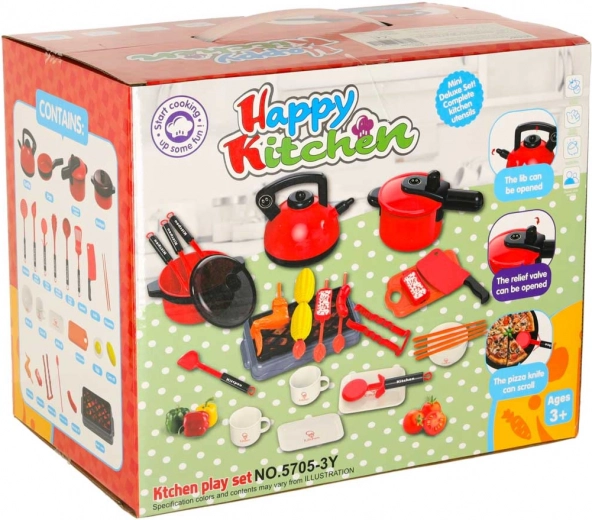 Bevat speelgoed zoals een grill, koekenpan, waterkoker en andere handige accessoires die kinderen nodig hebben om chefje te spelen.